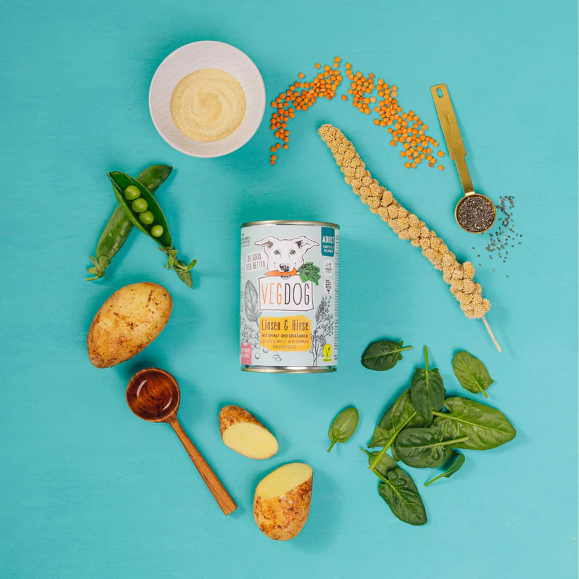 VegDog Nassfutter Adult mit Linsen und Hirse